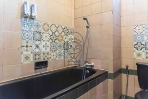 Spanning approximately 1,450 m² of land, the building offers 18 guest rooms featuring en-suite bathroom and a balcony or terrace space across four floors, including a spacious penthouse on the top floor with open views. Its distinctive design, blending Balinese and Japanese influences, creates a warm and memorable atmosphere for guests.