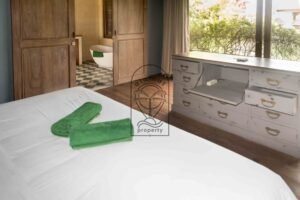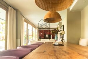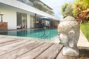 This Berawa 5-bedroom villa for sale offers a rare combination of comfort, elegance, and prime location. Only minutes from Berawa Beach and the vibrant center of Canggu, Villa Lawis blends modern Balinese design with natural materials. As a result, the atmosphere feels bright and airy, with open spaces that connect directly to the tropical garden and private pool.