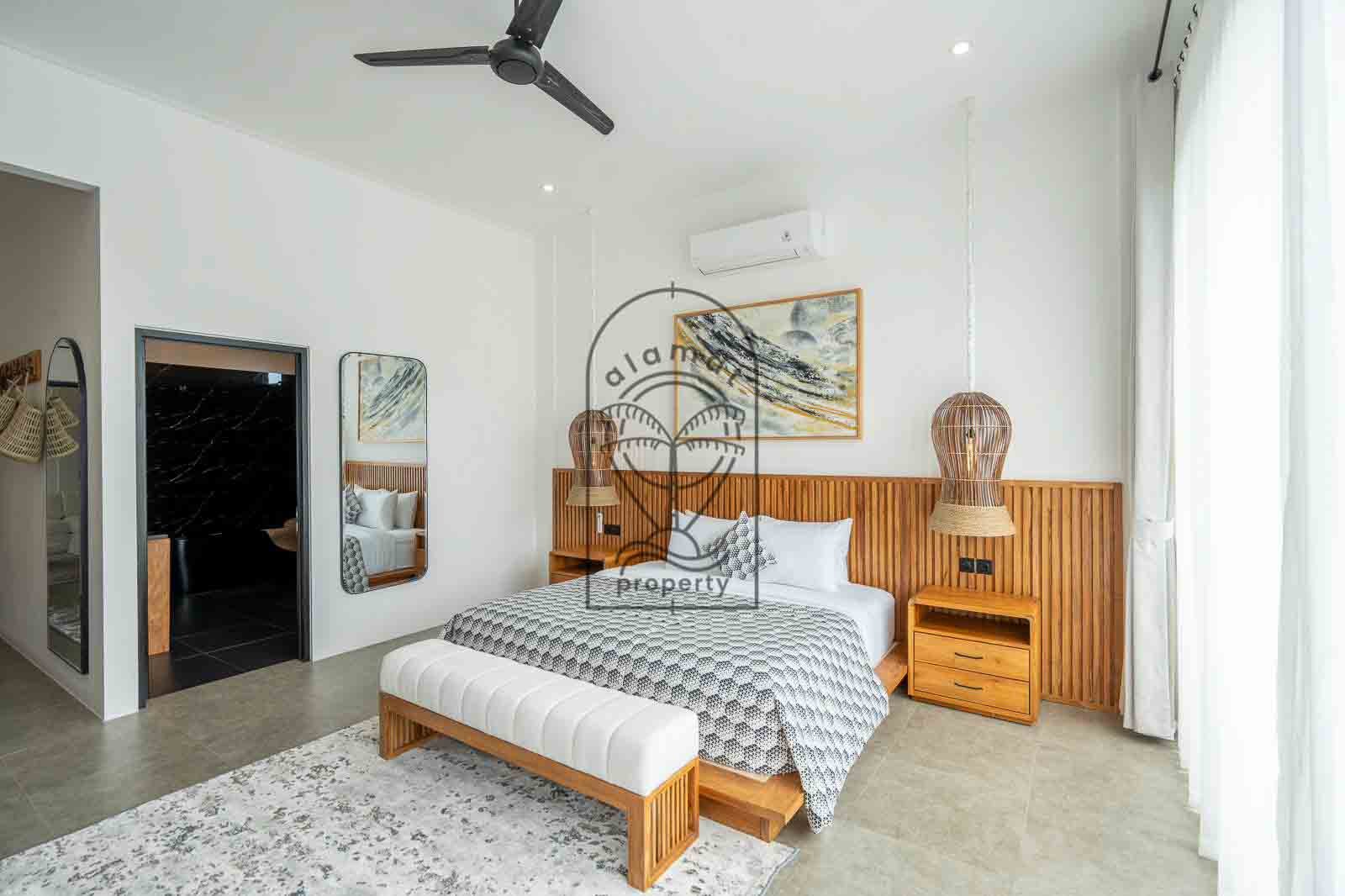 Outside, Villa Kessara includes a private swimming pool measuring 3 x 8 meters. A small garden surrounds the pool and adds a pleasant tropical touch. Moreover, the villa comes fully furnished with quality furniture and finishes. Electricity capacity is 10,600 watts, suitable for long-term use.
