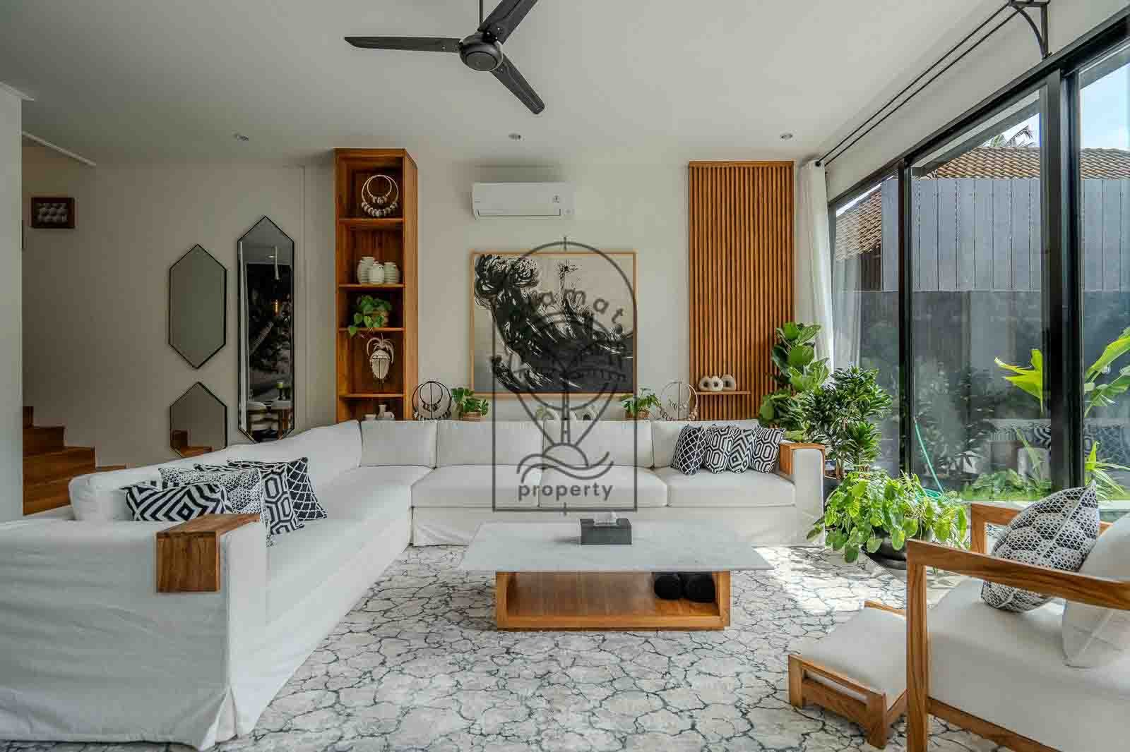 Villa Kessara Tumbak Bayuh is a modern three-bedroom villa available for yearly rent in a peaceful residential area close to Seminyak and Canggu. This property offers comfort, space, and privacy, making it ideal for long-term living in Bali.