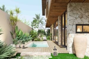 From a plot starting at 160 m², you can choose a 3 bedroom villa from only USD 215,000. Every detail can be customized from the floor plan and room arrangement to the choice of materials and finishes. A selection of four unique architectural styles is available: wabi-sabi, modern tropical, industrial, or terracotta, each creating its own distinctive atmosphere.