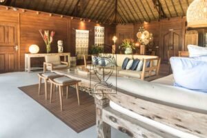 The villa features an open and airy living space that connects directly to the outdoor area. Thanks to this layout, guests enjoy natural light, fresh air, and a seamless flow between indoor and outdoor living throughout the day.