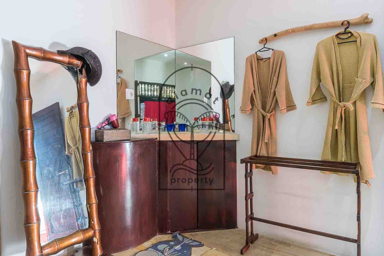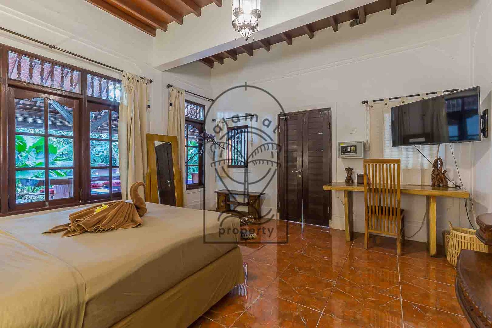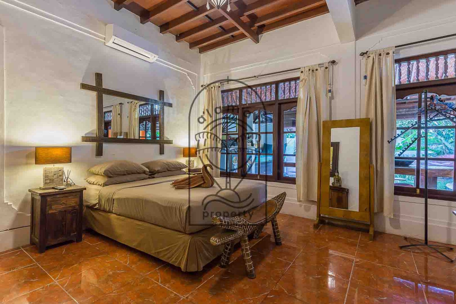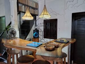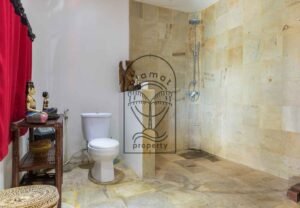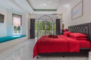The property includes four spacious bedrooms, each designed with its own personality and aesthetic. High ceilings, natural textures, and carefully selected décor give each room a distinctive feel. Large openings allow natural light and airflow, enhancing the overall sense of space and comfort.